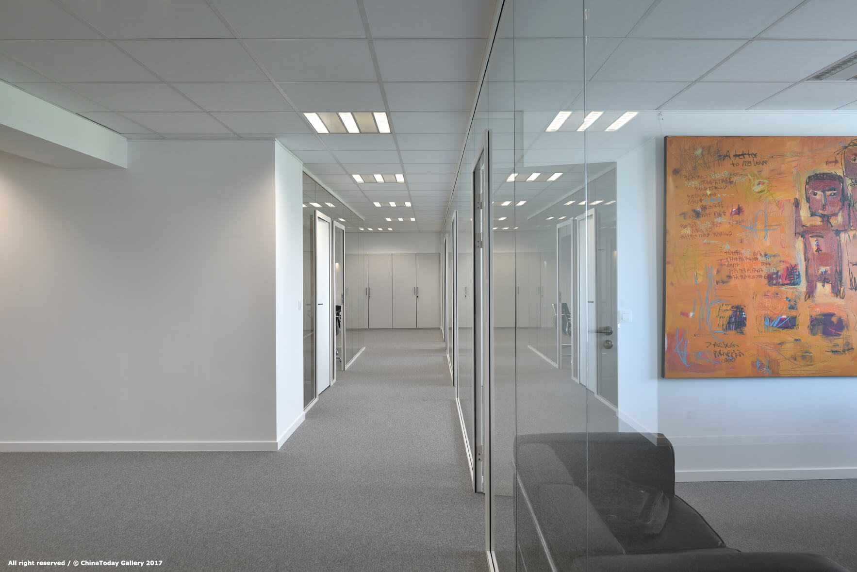 “We wanted a pleasant working space; somewhere that wasn’t partitioned off, which helps strengthen the image of a transparent law practice that is open to direct communication. And one that enjoys works of art – we are one of the partners of the Artonov Festival, which encourages the interdisciplinarity of the arts,” explains Laurence Hayaux. Alternativ took no time at all to respond. Consulting with FLINN, the interior designer opted for glass walls that would provide good sound insulation while still respecting the obligations of confidentiality inherent to the legal profession. FLINN’s lawyers love them: “These glass walls have the additional merit of making the space appear bigger while also making it lighter visually.” And to meet FLINN’s second requirement, the designer included picture rails for hanging photos and paintings on the big white walls of the office. That was the art effect sorted!