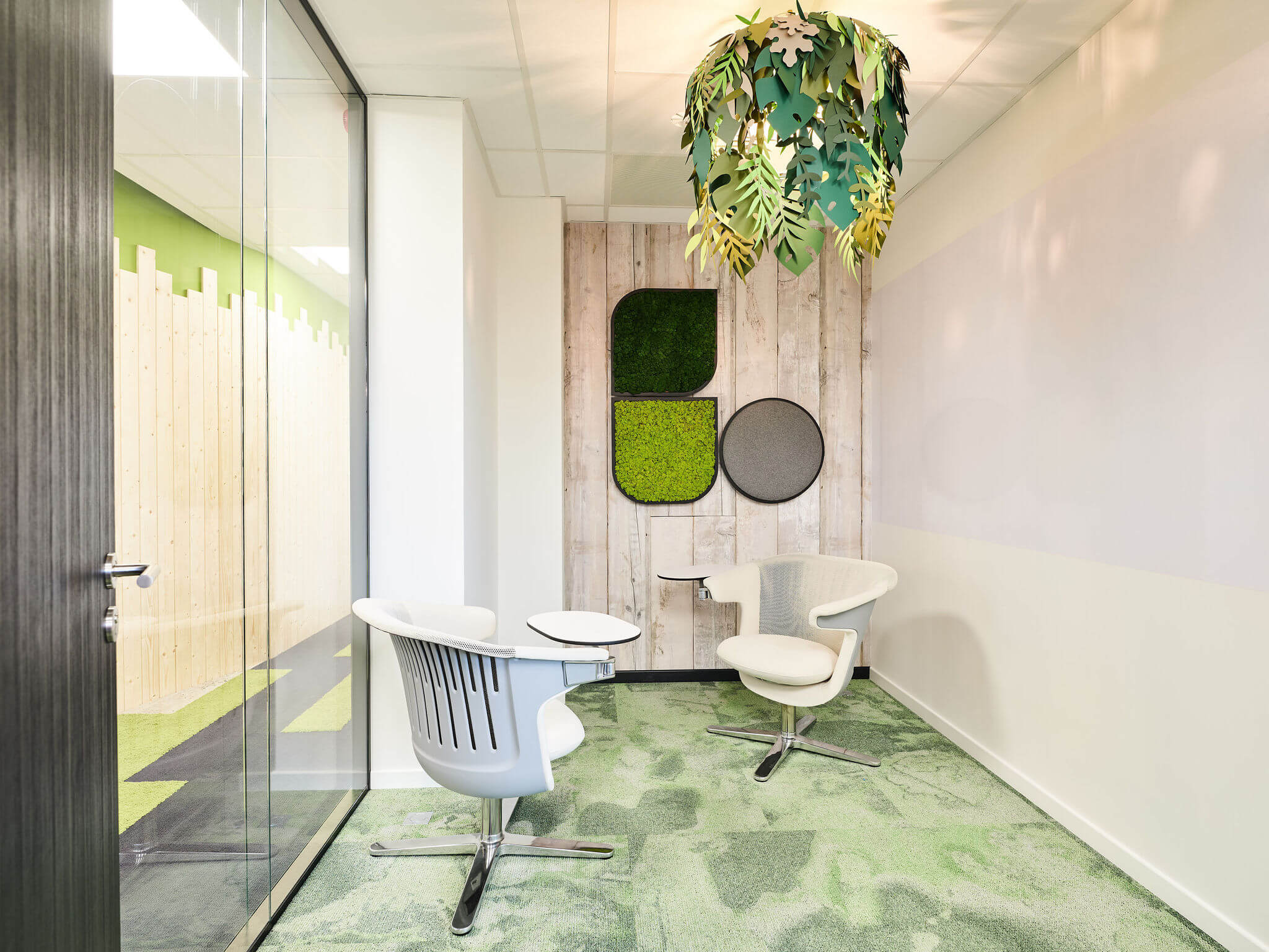 “On the first floor, Alternativ drew significantly on the benefits of bibliophilic design,” she continues. “Numerous studies have in fact shown that having green plants in the office helps increase productivity. And, more generally, we focused on green, because green represents nature, which is both calming and zen. It also aids concentration and is re-energising at the same time! We have used green in a range of different tones and media (painted rugs, fitted carpet, furnishings, etc.) to vary the effects. We have also set up a Games Room (featuring ping-pong tables in particular), which is a great place to socialise – as is the cafeteria that will occupy the whole of the ground floor.”
