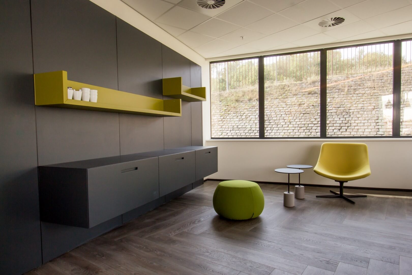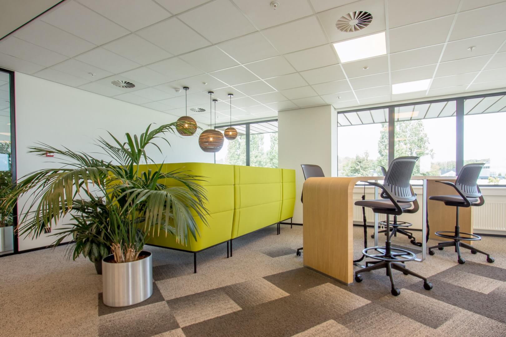 Daarom nam Alternativ op verzoek van BAM Contractors de onthaalruimte van het bedrijf onder handen en maakte er een levendige, gezellige en inspirerend plek van.