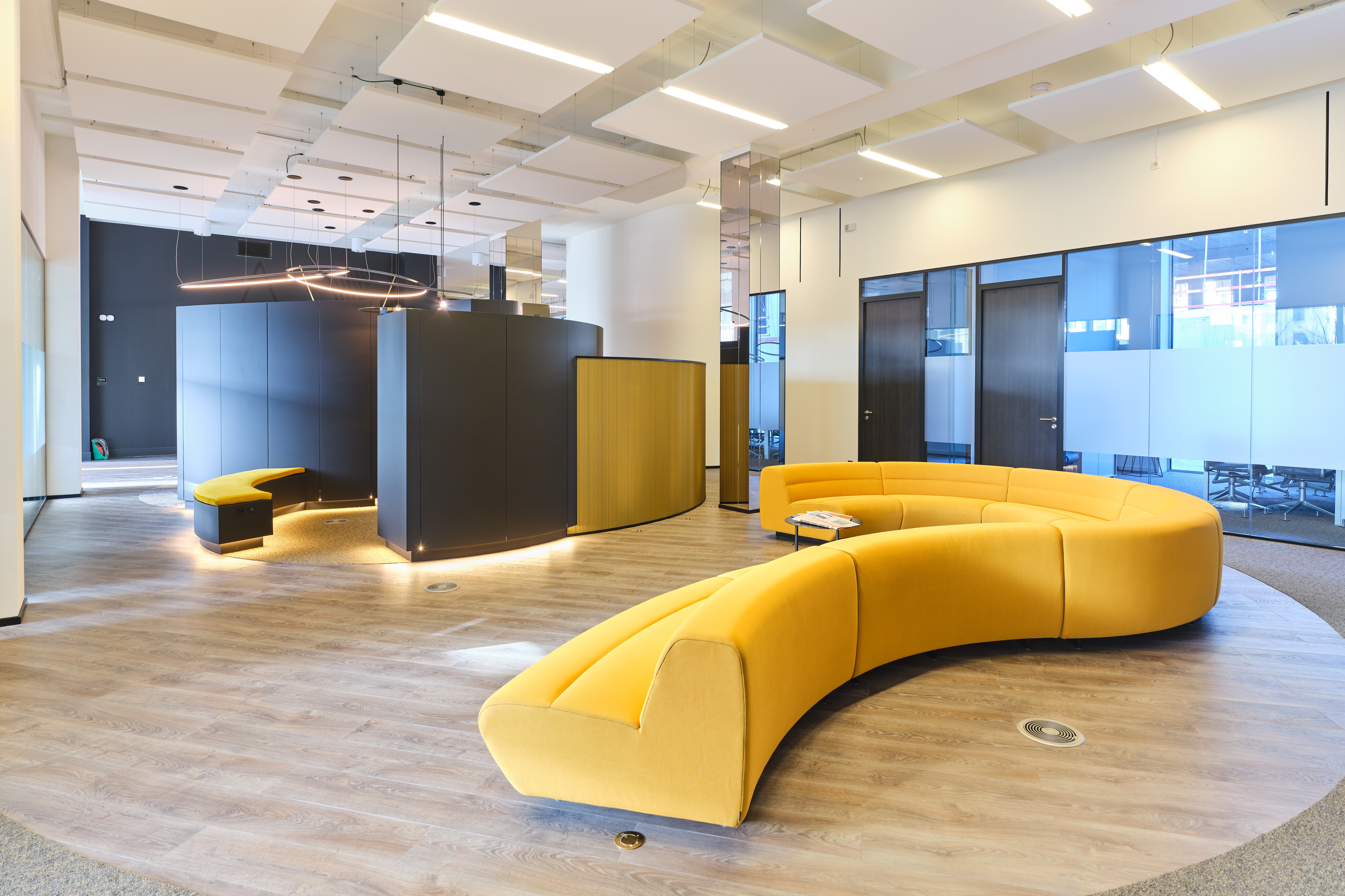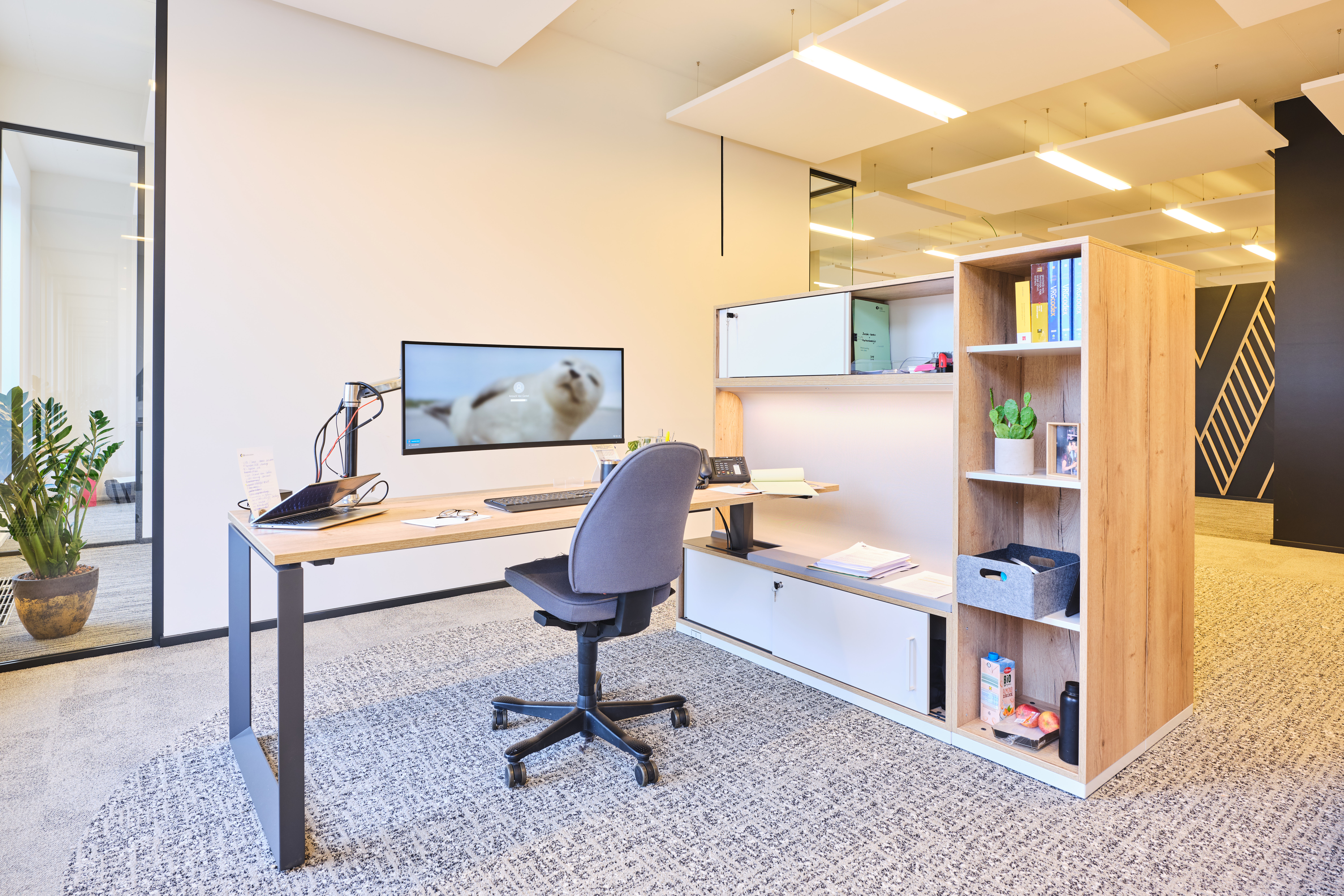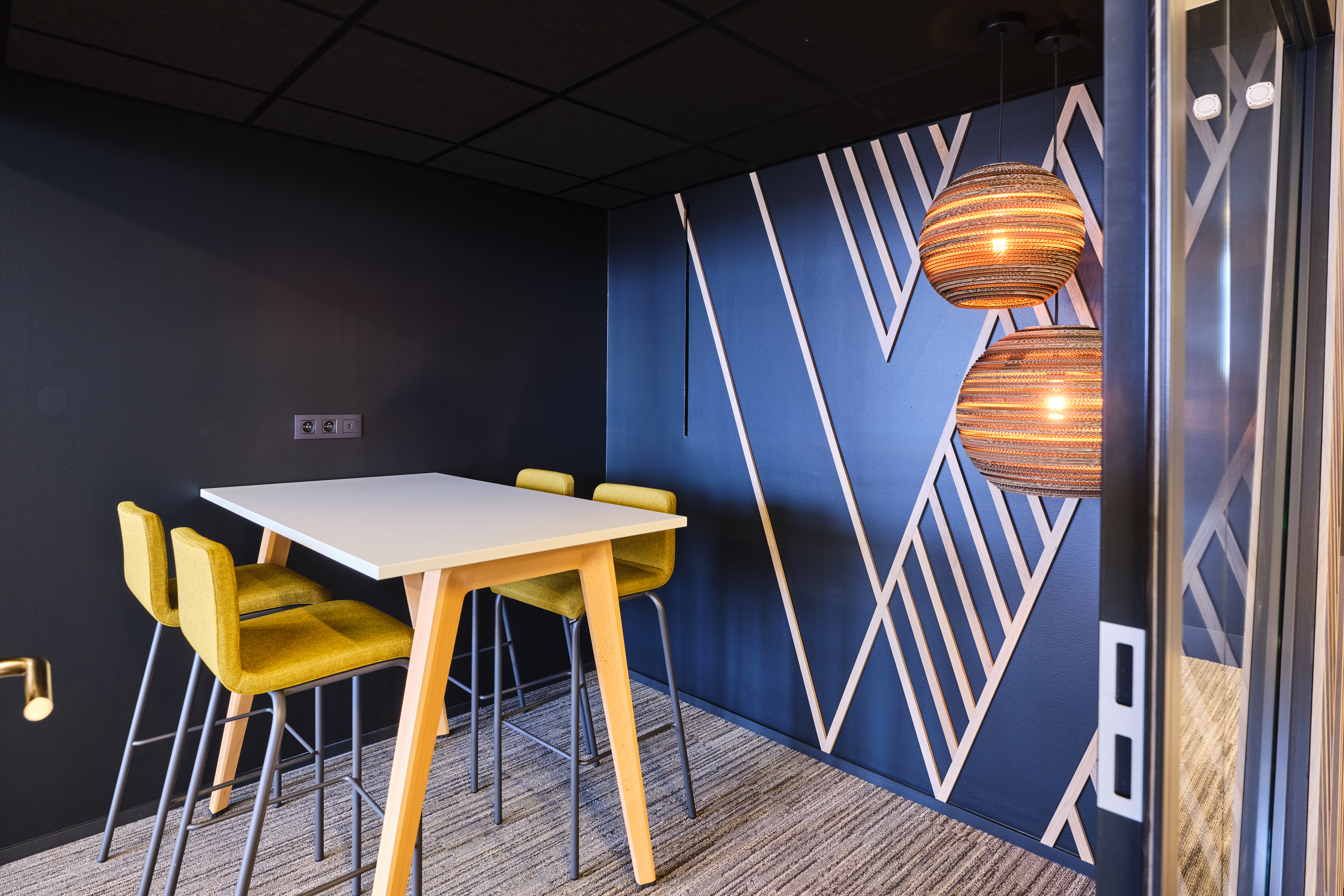Het concept van symbiose, bedacht door Pedro Rodrigues, trok GSJ over de streep. De talrijke contacten tussen Iris Van den Ostende en de medewerkers van GSJ namen de angst voor een open kantoorruimte weg. Nu moest er nog een wow-gevoel gecreëerd worden bij het binnenkomen. Samen met Laurence Moisse, interieurarchitect bij Alternativ, ontwierp Iris een publieke benedenverdieping die zowel elegant als imposant is. Zoals iedereen weet is de onthaaldesk het eerste dat men van een bedrijf te zien krijgt. Op de bovenverdieping maakte Alternativ dan weer gebruik van hout en stoffen om een warme sfeer te creëren die het comfort en de levenskwaliteit van de medewerkers van GSJ bevordert. Het voelt (bijna) als thuis! Bij het afronden van dit artikel ontving Project Manager Iris nog een warme e-mail van GSJ, dat duidelijk zeer tevreden is over het maatwerk van de teams van Alternativ. “Een tevreden klant, omdat we goed naar hem hebben geluisterd.”, concludeert een lachende Iris Van den Ostende.