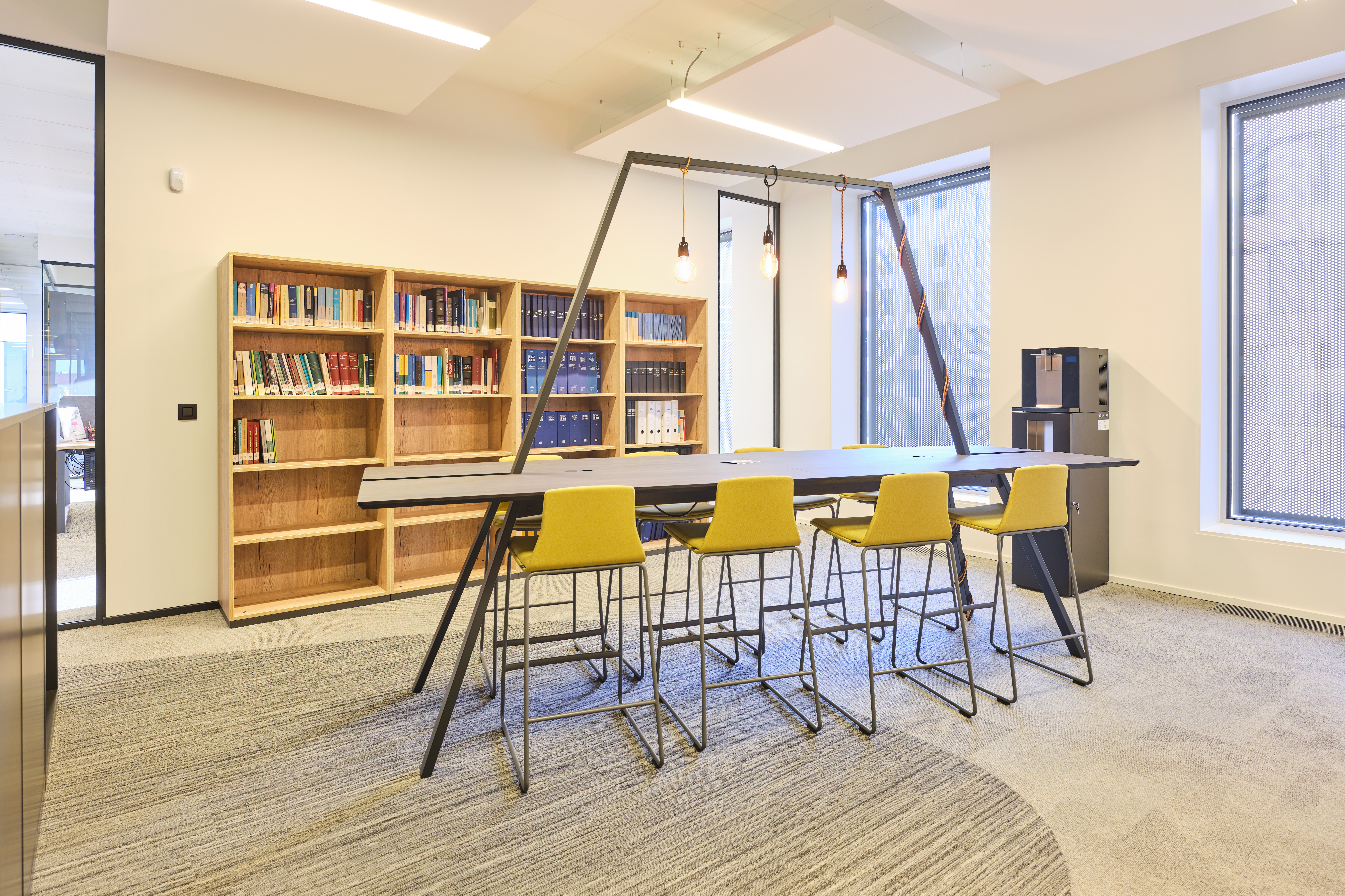 GSJ was op zoek naar een open ruimte die het imago van een modern advocatenkantoor kan helpen versterken, maar was bang dat de gezelligheid en de dynamiek van zo’n inrichting ten koste zou gaan van de rust en concentratie. Het lijkt erop dat bedrijven tegenwoordig bang zijn voor open kantoorruimtes! Iris Van den Ostende nuanceert: “Het concept van open kantoorruimtes maakt het niet alleen mogelijk om ruimte te winnen (een wens van veel klanten), maar bevordert ook het gevoel dat we samen aan een gemeenschappelijk project werken. We moesten ook rekening houden met een andere parameter: een advocatenkantoor heeft persoonlijke ruimtes nodig! We hebben lang en hard nagedacht en hebben uiteindelijk een oplossing gevonden We hebben eerst twee aparte ruimtes gecreëerd: op de begane grond een openbare ruimte voor de klanten; op de bovenverdieping een werkruimte. Vervolgens hebben we in de werkruimte Team Zones gecreëerd, dit zijn ruimtes waar men zich kan concentreren en onderling overleggen, in het hart van de gemeenschappelijke open ruimte”. Quod erat demonstrandum! De oplossing die de PM voorstelt valt in de smaak bij GSJ. De werken kunnen beginnen.