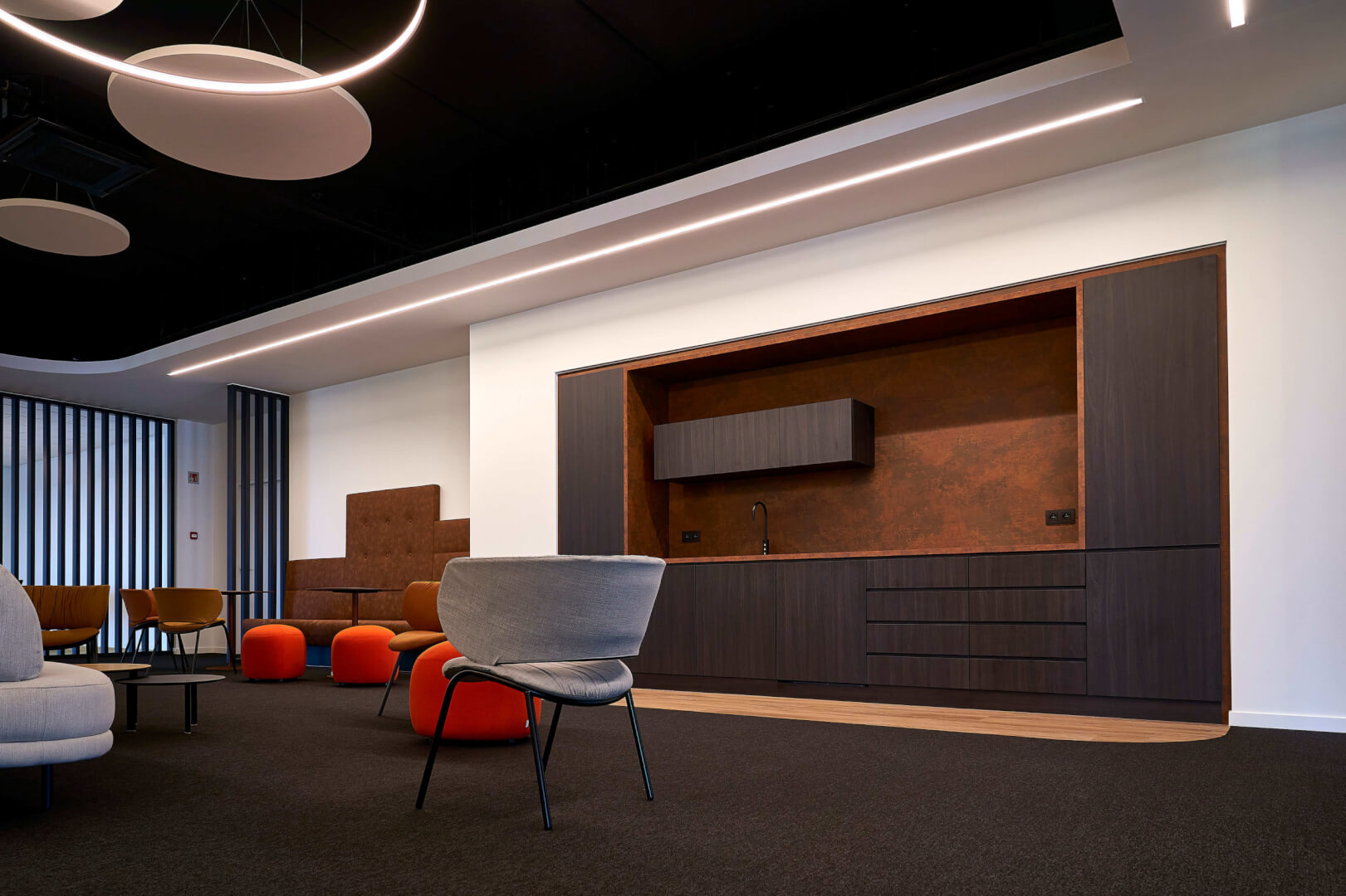 Paul Ribus had een ruimte voor ogen waarin werknemers zich thuis zouden voelen en waar bezoekers met plezier naartoe zouden gaan om zich te laten inspireren door de nieuwste technologieën. “We waren op zoek naar een concept met verschillende zones met elk een heel eigen gevoel en uitstraling: speels, ontspannend of meer zakelijk,” legt Paul uit. “We wilden ruimtes creëren waar mensen elke dag iets nieuws in kunnen ontdekken.” Deze uitdaging legde de CEO onder meer voor aan Alternativ, dat het hele FANUC-team wist te verbazen met hun conceptpresentatie.