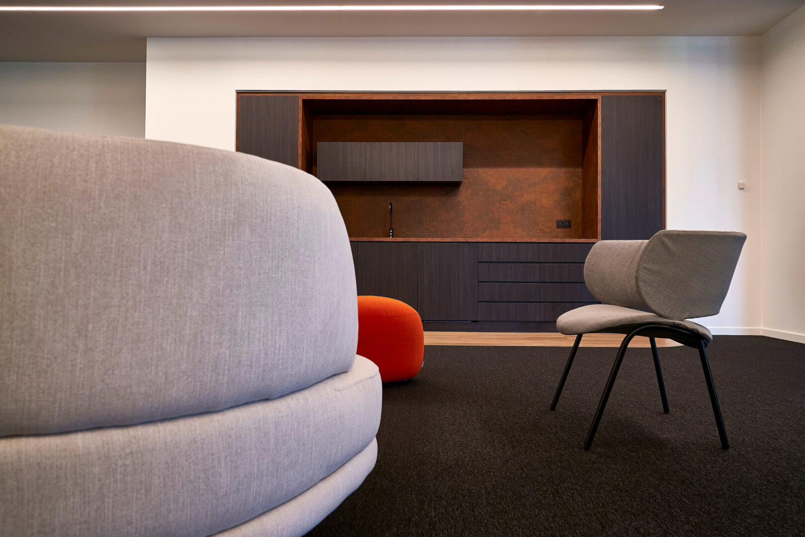 Nadat FANUC Benelux groen licht gaf voor het concept, waakte Alternativ mee over de uitvoering tijdens wekelijkse werfvergaderingen en met advies op elk gebied: van de plafonds tot de vloeren. En hoewel de samenwerking oorspronkelijk enkel rond het interieurontwerp was opgebouwd, kozen Paul en zijn team ook voor de effectieve levering van de meubels al snel voor de merken die Alternativ verdeelt.
