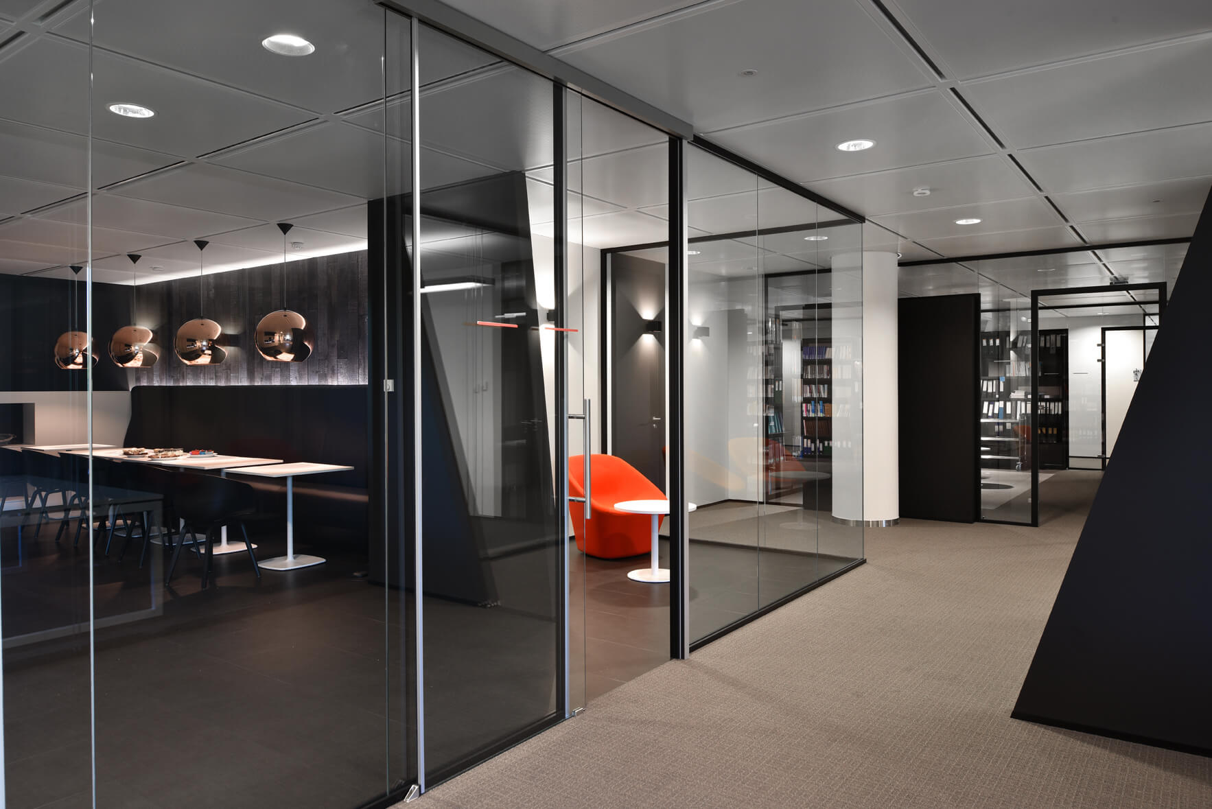 “De belangrijkste uitdaging lag verweven met ons vakdomein. De kantoren en vergaderzalen moeten perfect geluiddicht zijn. Enkel op die manier kunnen we de vertrouwelijkheid garanderen. Maar tegelijk wilden we lichte, luchtige en transparante ruimtes. Alternativ heeft dat onmiddellijk goed begrepen. Mijn collega’s en onze klanten zijn enthousiast over het resultaat. Het is een succes geworden dat voor een groot deel te danken is aan de grote bereikbaarheid van Alternativ tijdens de uitwerking van het project. De lijn tussen de commercieel verantwoordelijke en de ontwerper van de plannen is zeer kort. We ondervonden niet het minste probleem om een gesprekspartner vinden voor de keuze van het meubilair of het kleurenpatroon. Ik kijk zeer tevreden terug op onze openhartige samenwerking,” besluit Meester Frédéric Lettany.