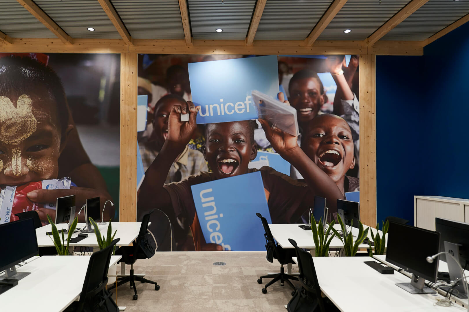 We Hebben met hart en ziel gewerkt om de nobele missie en waarden van UNICEF te vertalen naar zijn werkruimte. UNICEF België organiseert opleidingen en evenementen en ontvangt tal van bezoekers. Alternativ moest de organisatie dan ook een sterke identiteit geven via de inrichting van haar kantoren.