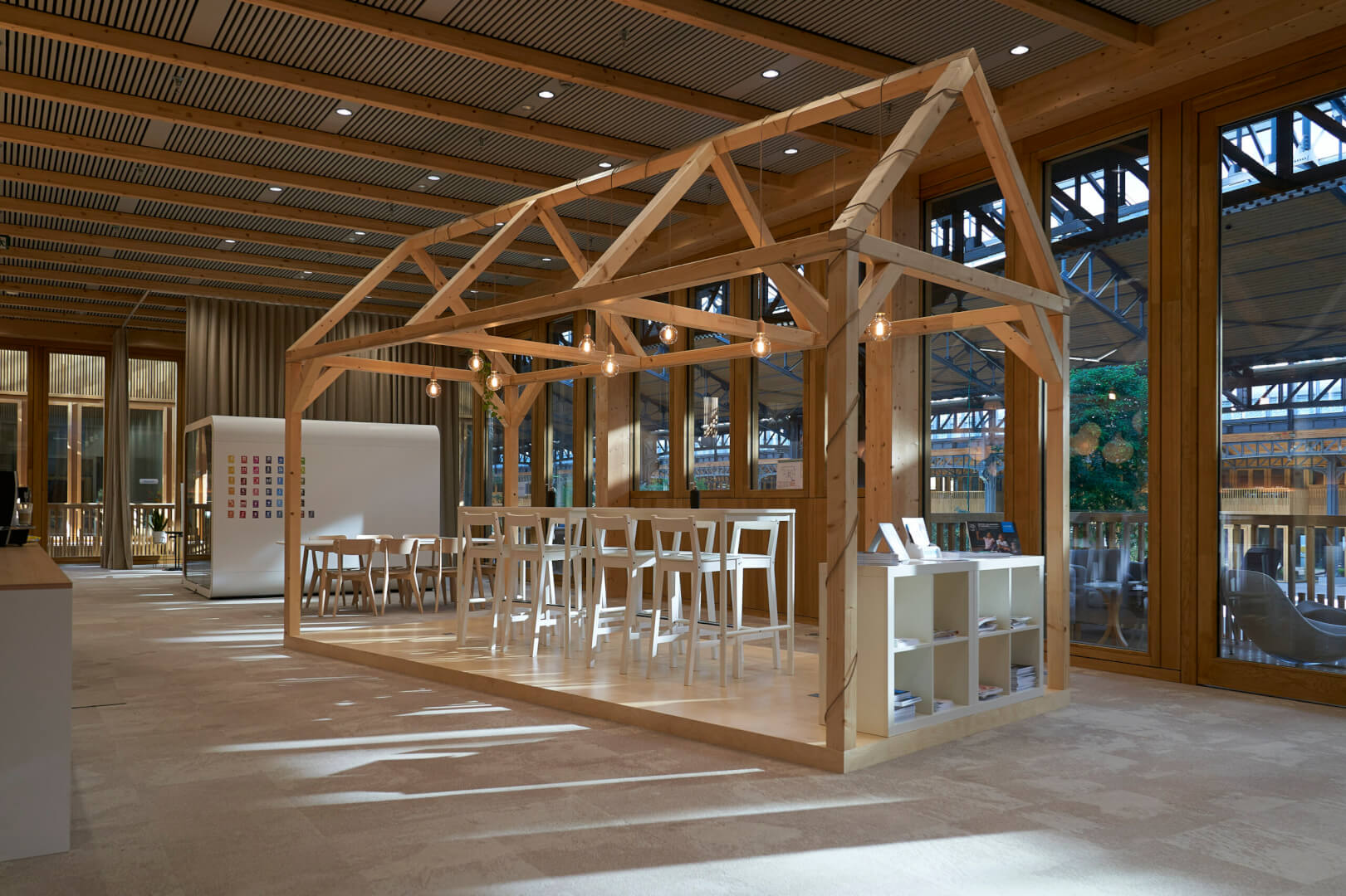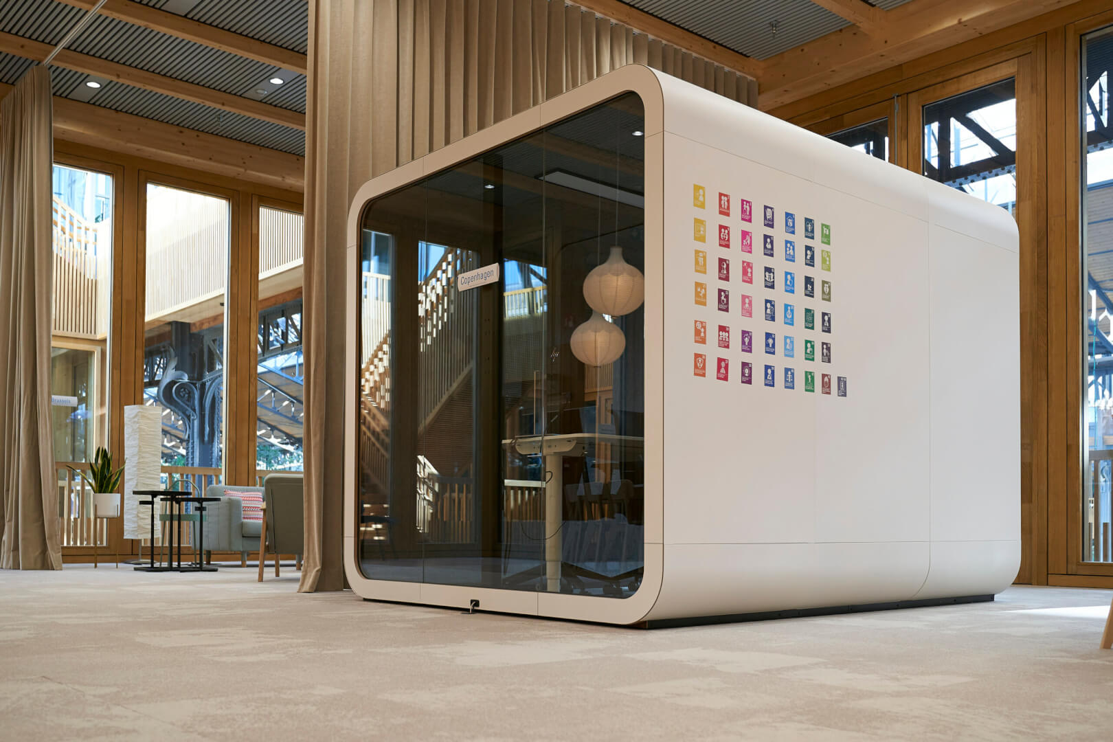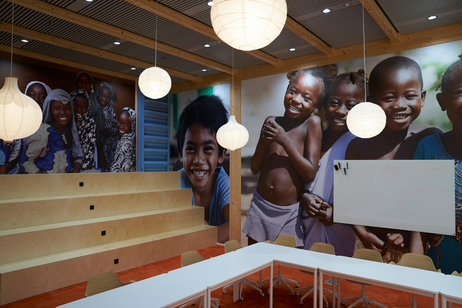 Om de missie van UNICEF België als behoeder van kwetsbare kinderen en beschermer van kinderrechten in de werkomgeving te benadrukken, creëerden we als eerste decorelement een kinderhuis, dat veiligheid uitdraagt. Deze ontvangstruimte, die als inkomhal en flexkantoor fungeert, sprak het team van UNICEF België meteen aan. We werkten ook samen met enkele leveranciers en partners van UNICEF en gaven daarbij voorrang aan duurzame materialen zoals natuurlijk hout en zachte kleuren. Grote UNICEF-foto’s van kinderen sieren de muren van verscheidene lokalen om ze kleurrijker en levendiger te maken. Dit project is het resultaat van een co-creatieproces en inzicht in de behoeften van het team. We zijn echt trots dat we mochten samenwerken met een organisatie die zo’n belangrijke missie nastreeft.”